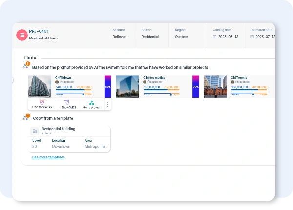 Its AI-driven analytics break down success factors by client, project type, and bid value, revealing where your team performs best and where there’s room to improve.