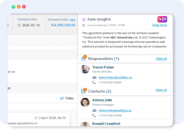 By connecting CRM, Tender, RFQ, and Contract modules in one intelligent system, it gives teams full visibility, reduces manual work, and increases win rates through data-driven insights and automation.