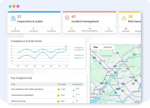Manage risks, incidents, inspections, training, and PPE in one integrated system.