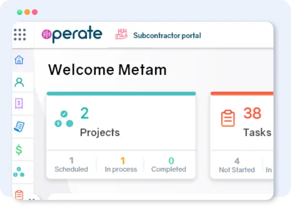 Operate connects every phase of your supply chain — from sourcing to delivery — into one smooth, automated workflow. Gain visibility across procurement, subcontracting, inventory, warehouse, and logistics to ensure materials are always available and operations stay efficient.