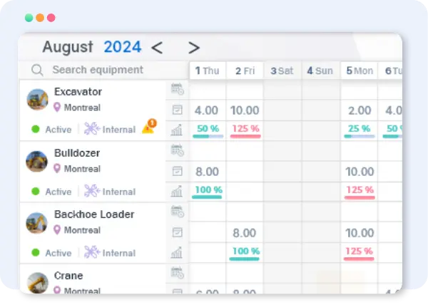 Obtenez une visibilité en temps réel sur l’affectation, la performance et les coûts — pour que vos équipements soient toujours au bon endroit, au bon moment.